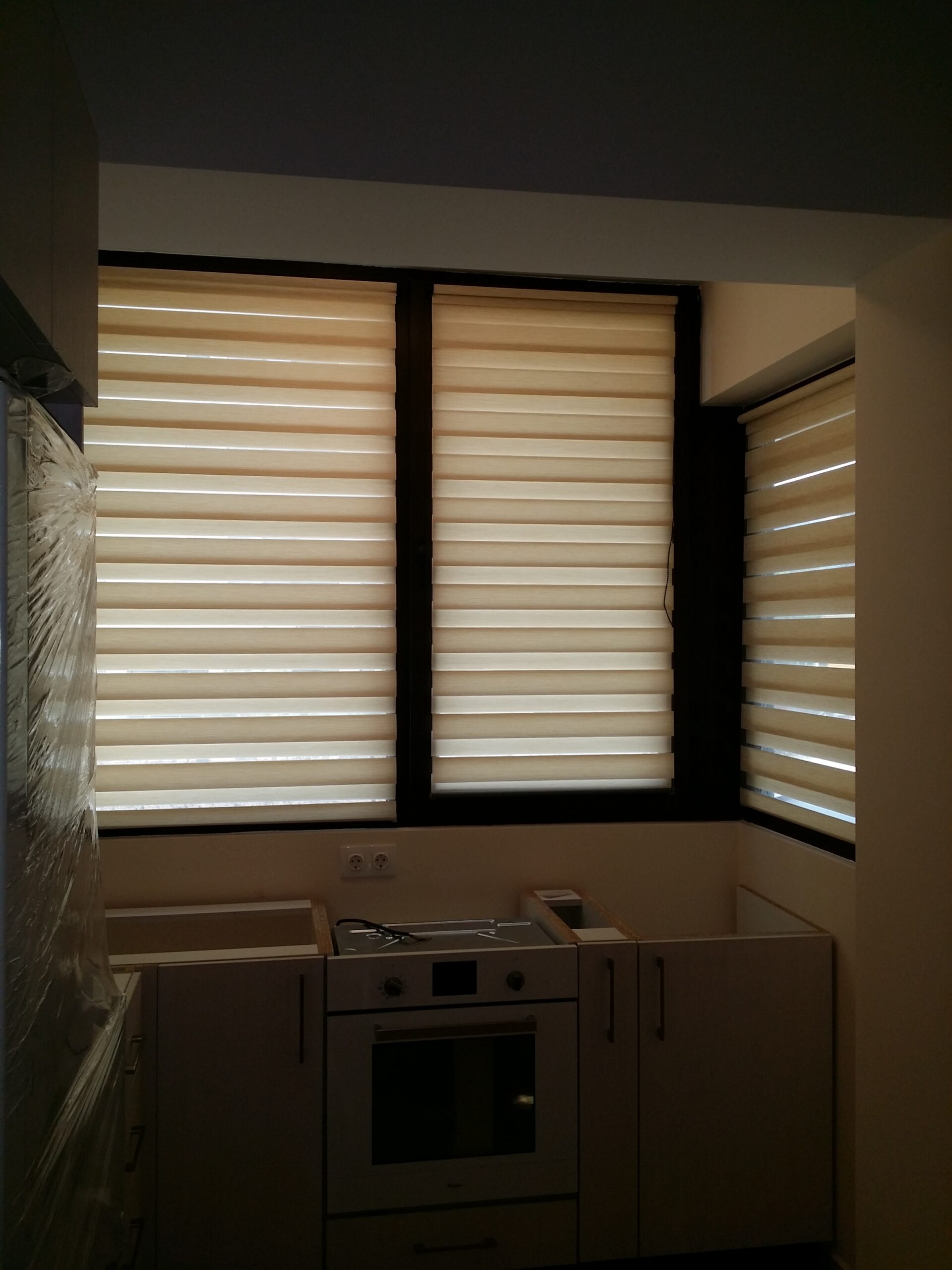 Duo rulouri, rulou Zi-Noapte, Day&Night, acelasi produs cu o functionalitate deosebita, materiale textile de diverse culori, diverse texturi, semitransparente, cu sistem de actionare alb sau maro.